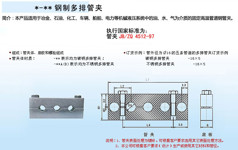 產品特點:鋼制多排管夾使用靈活方便,可以固定多根同管徑和異徑的管道。