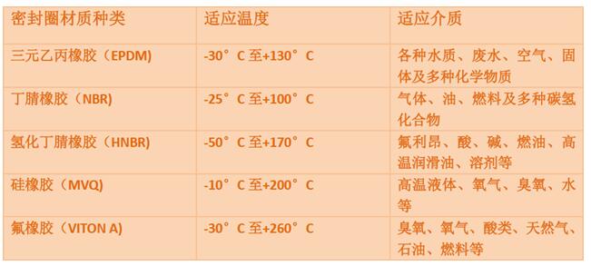 橡膠材質(zhì):三元乙丙橡膠、硅膠、氟膠、丁腈橡膠等。