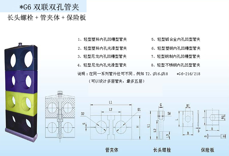 管夾體:PP/PA/AL /Q235/SS304/XS316