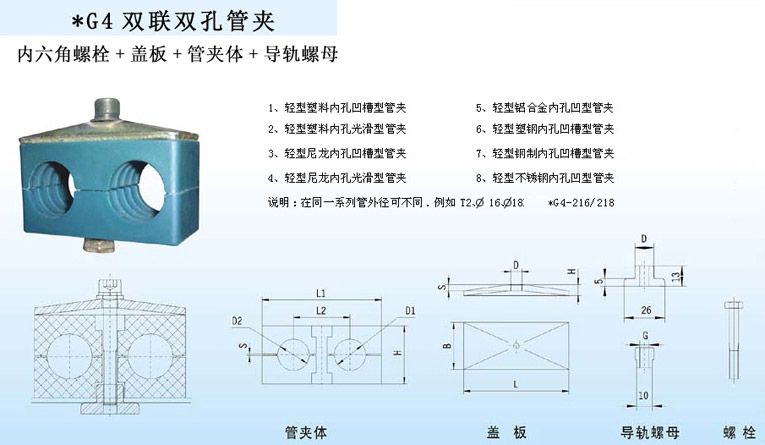 管夾體:PP/PA/AL /Q235/SS304/XS316